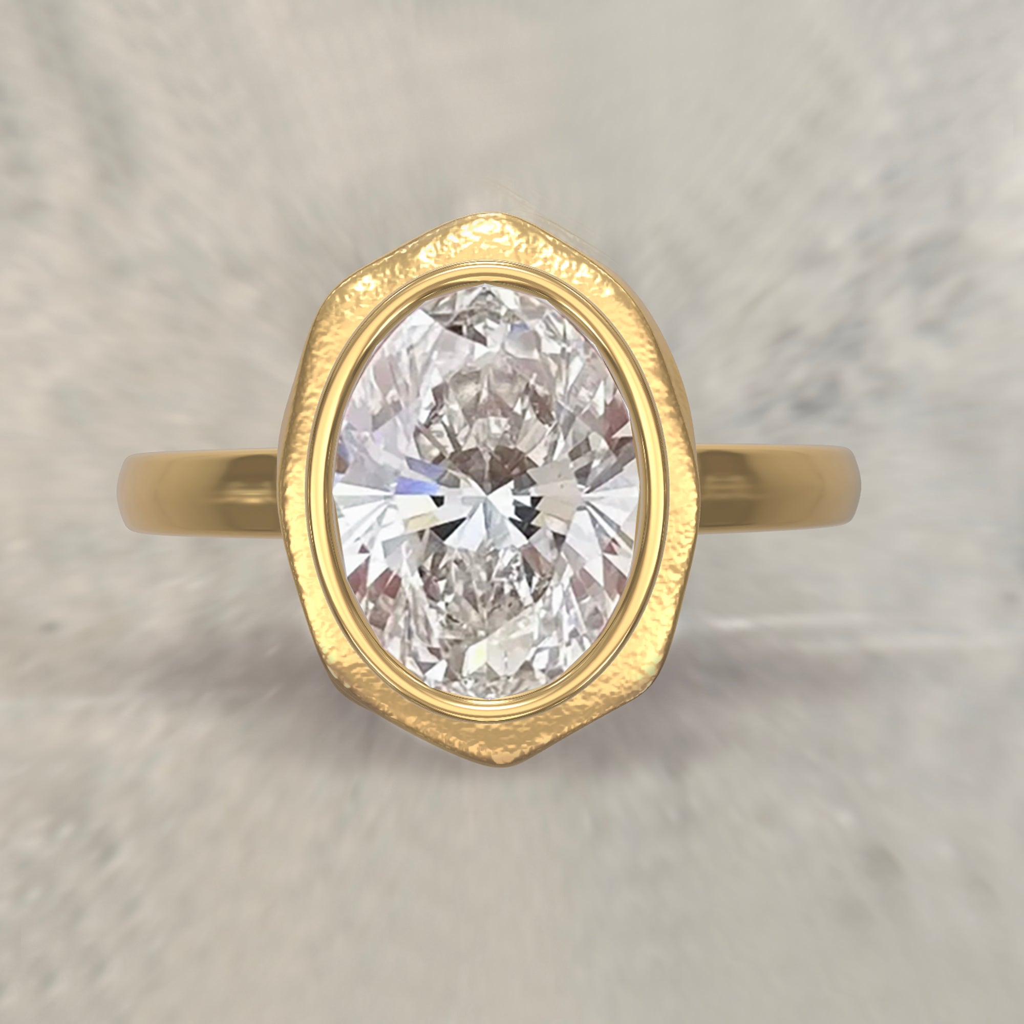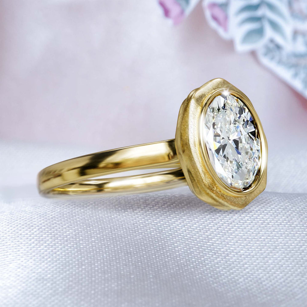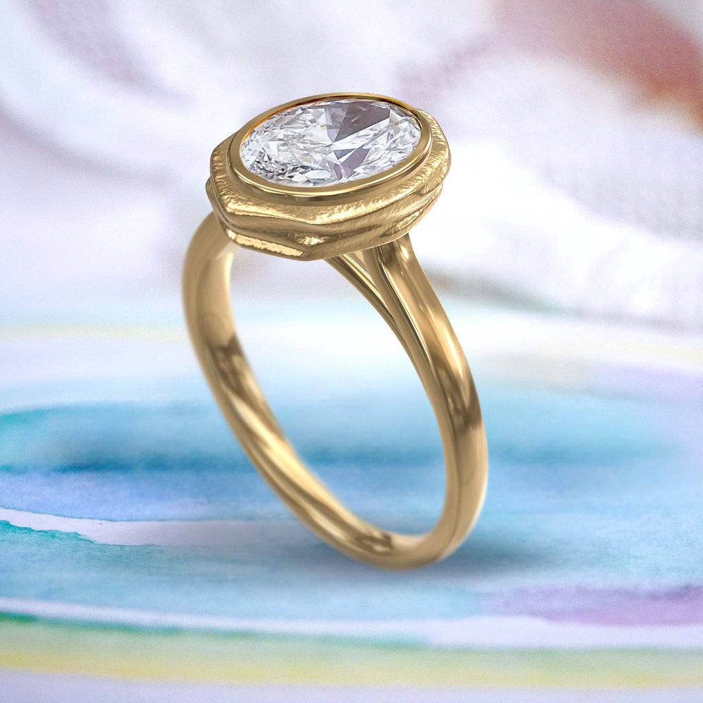 Rock Oval Diamond Solitaire Unique Engagement ring in 9ct / 14ct/ 18ct Gold Rings Bijoux de Chagall
