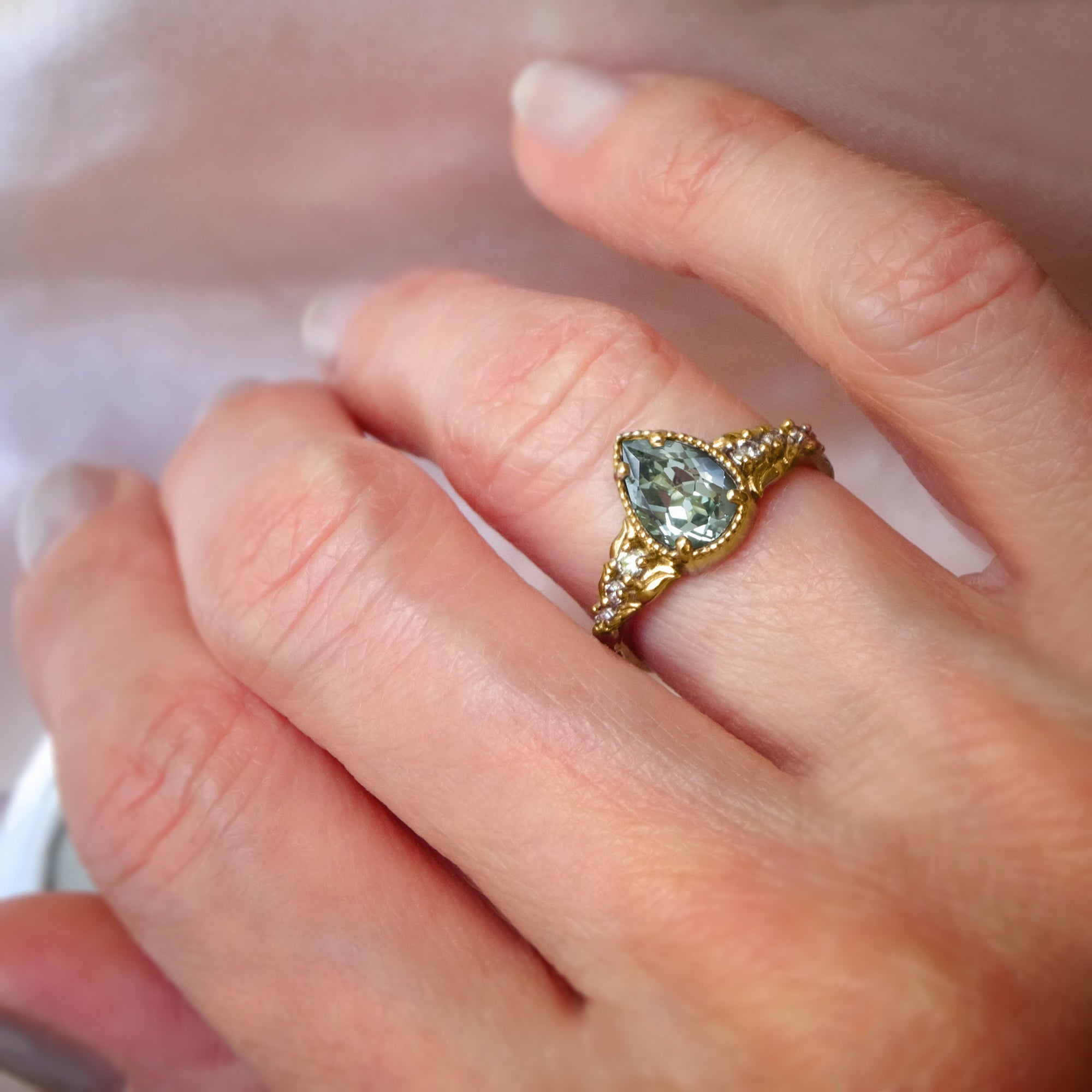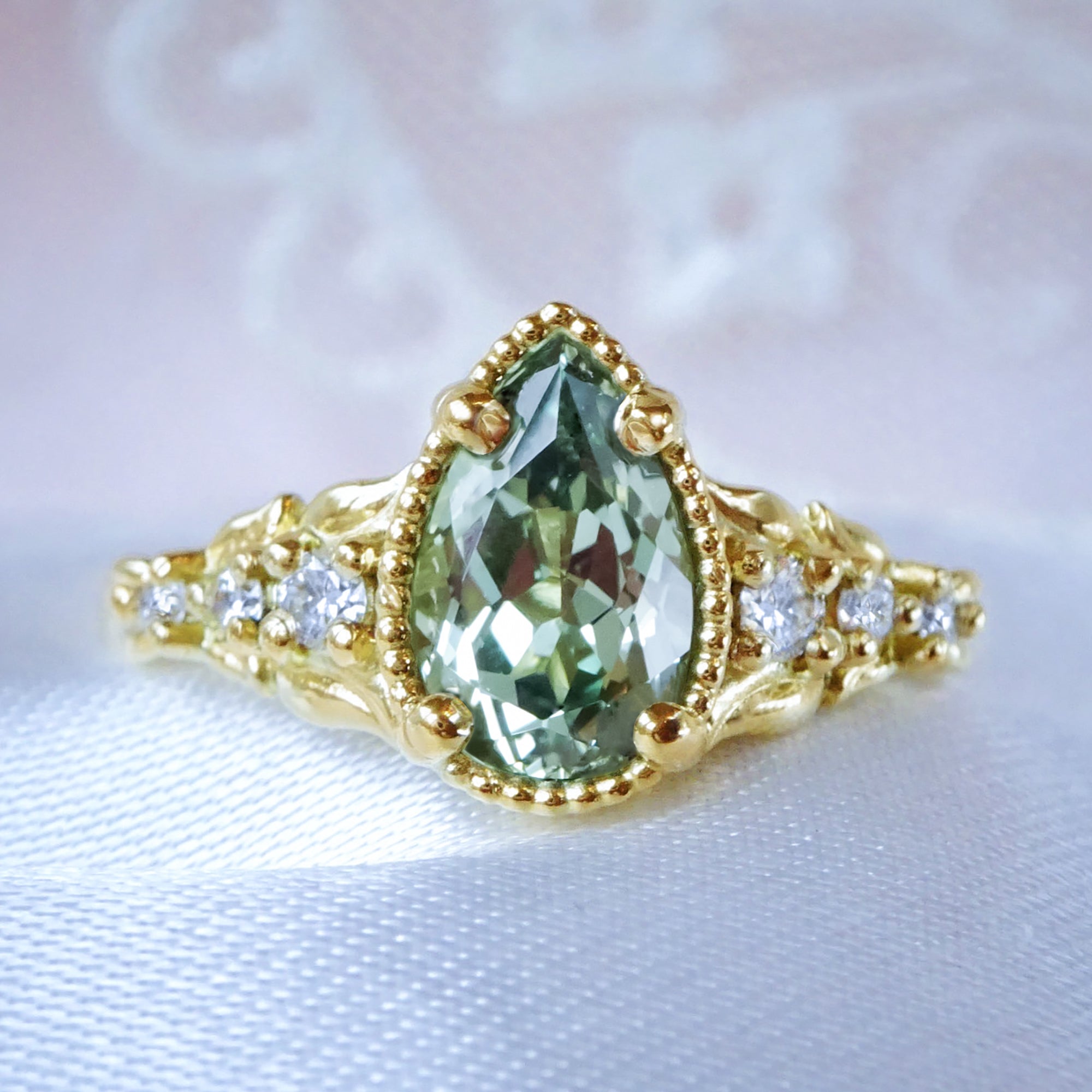 Dreamy Flora Pear Green Sapphire or Diamond Engagement Ring in 9ct / 14ct/ 18ct Gold Rings Bijoux de Chagall