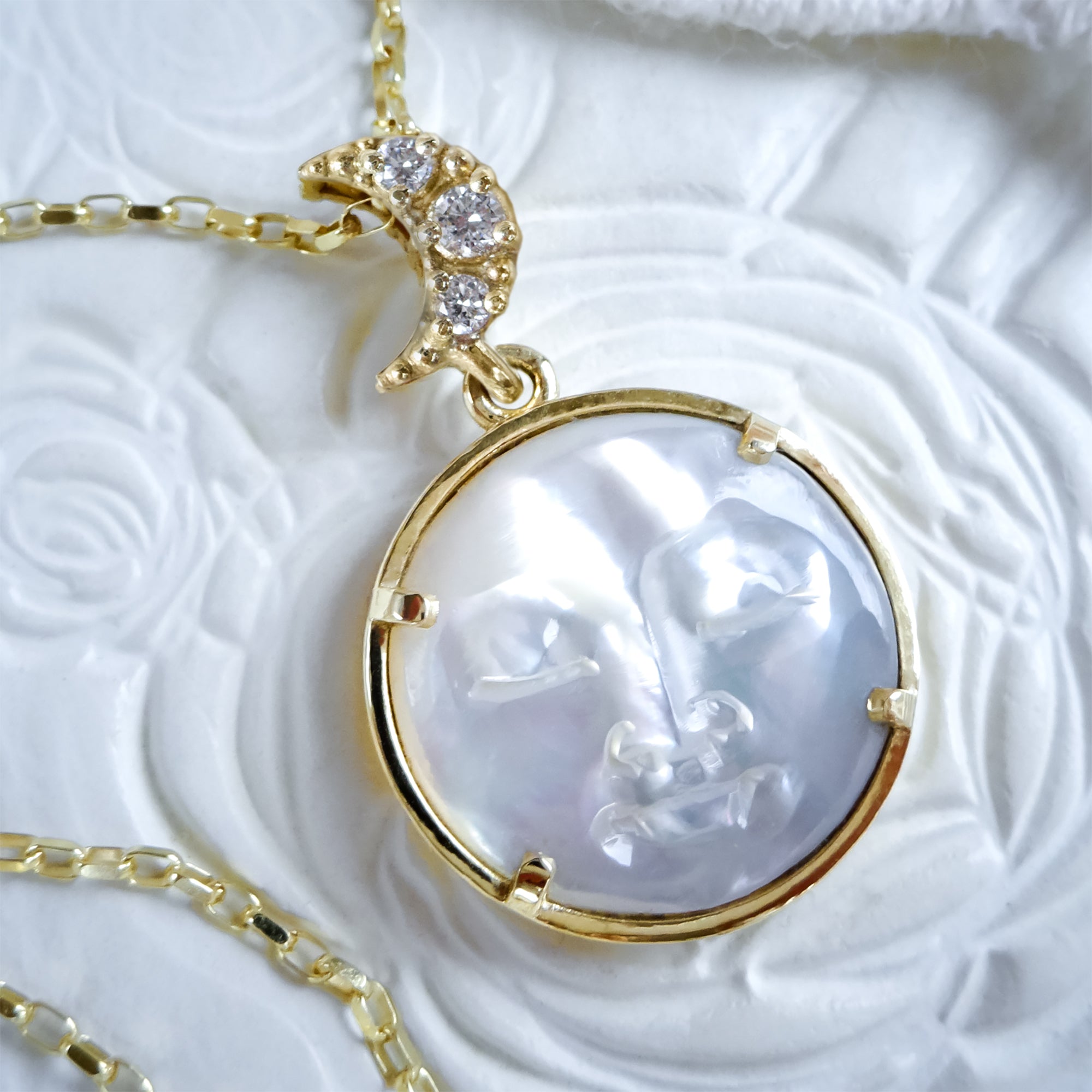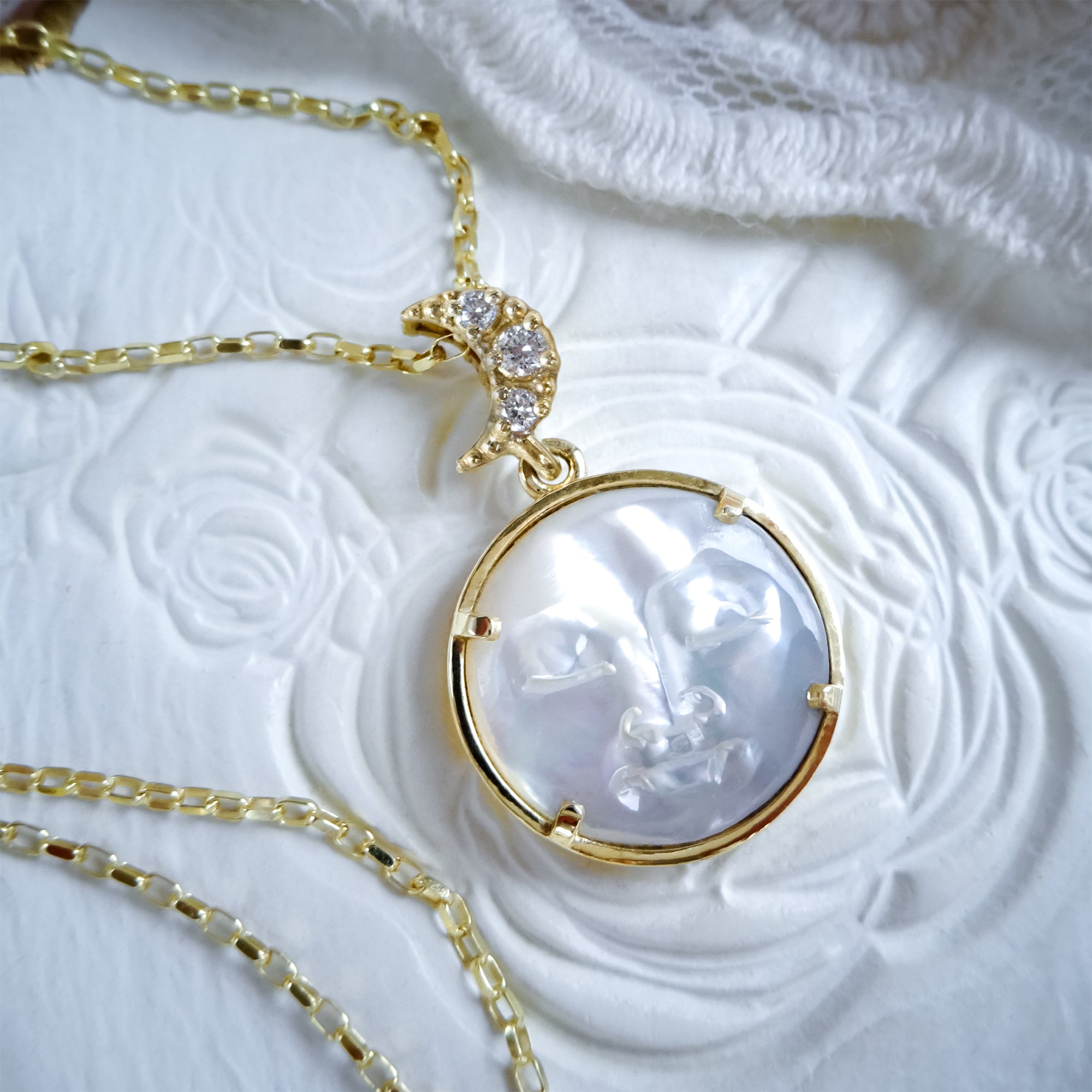 Art Deco Crescent Diamond Pearl Moon Necklace in 9ct / 14ct / 18ct Solid Gold