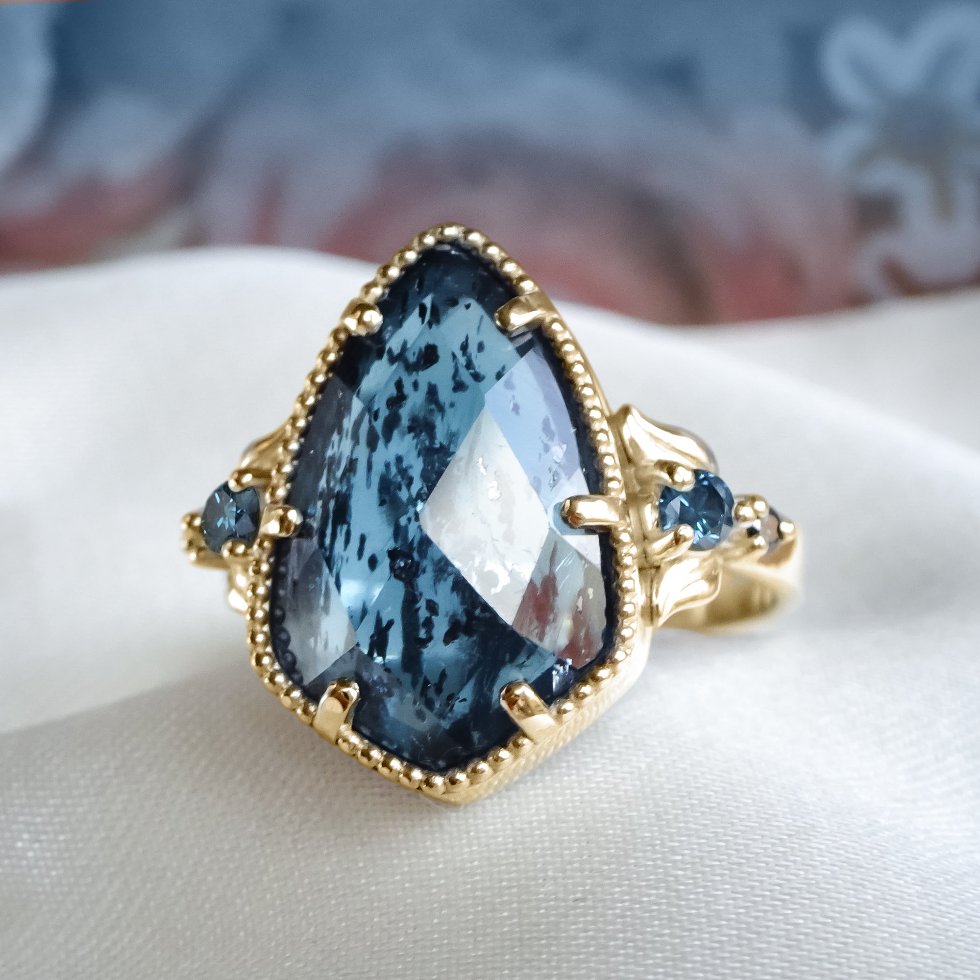 Midnight Teal Moss Kyanite Floral Style Engagement ring in 9ct / 14ct / 18ct soild Gold