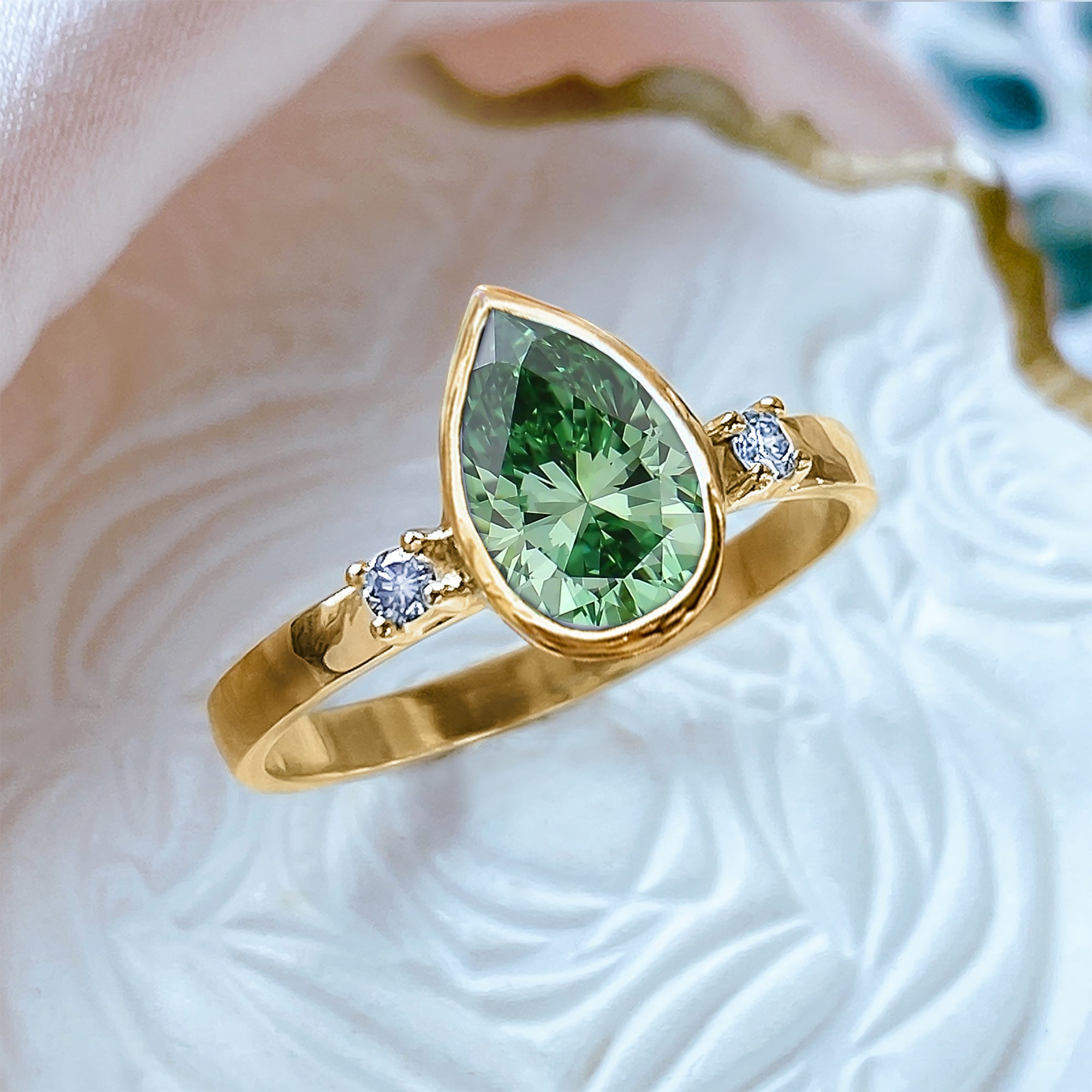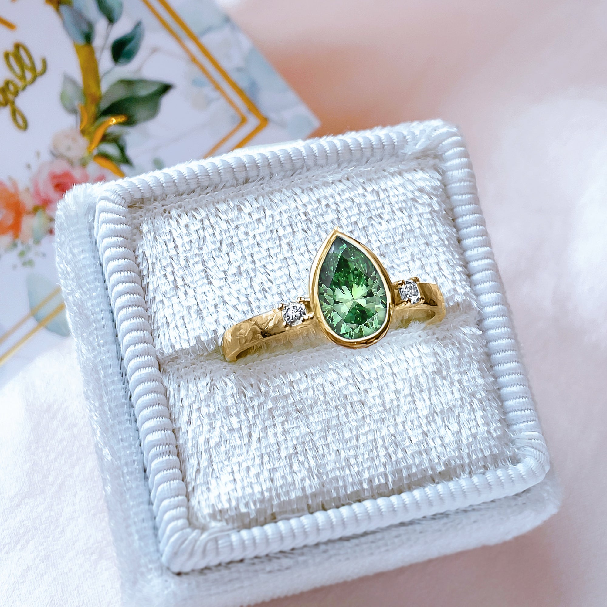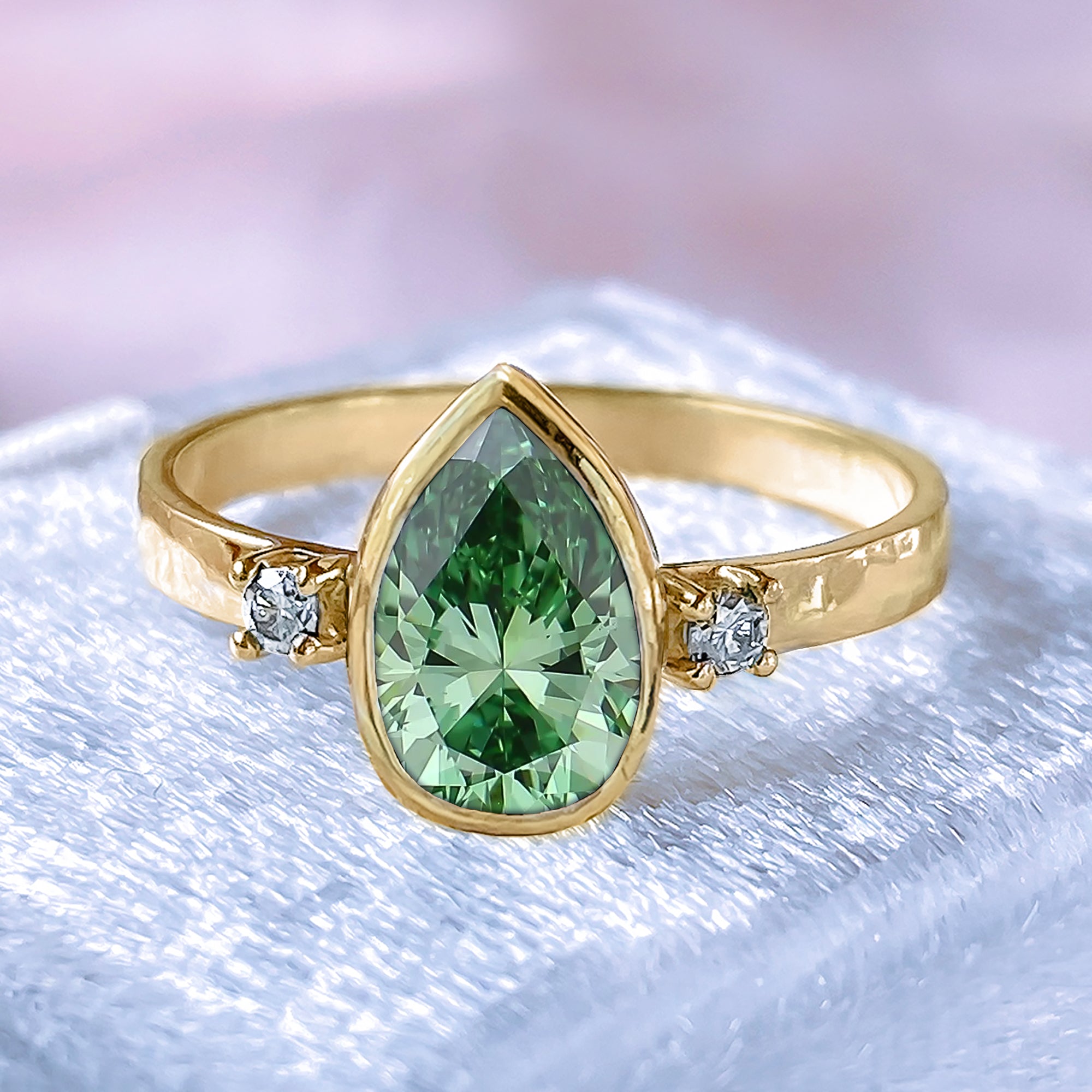 Magnificent Pear Green Diamond Romantic Engagement ring in 9ct / 14ct / 18ct Gold
