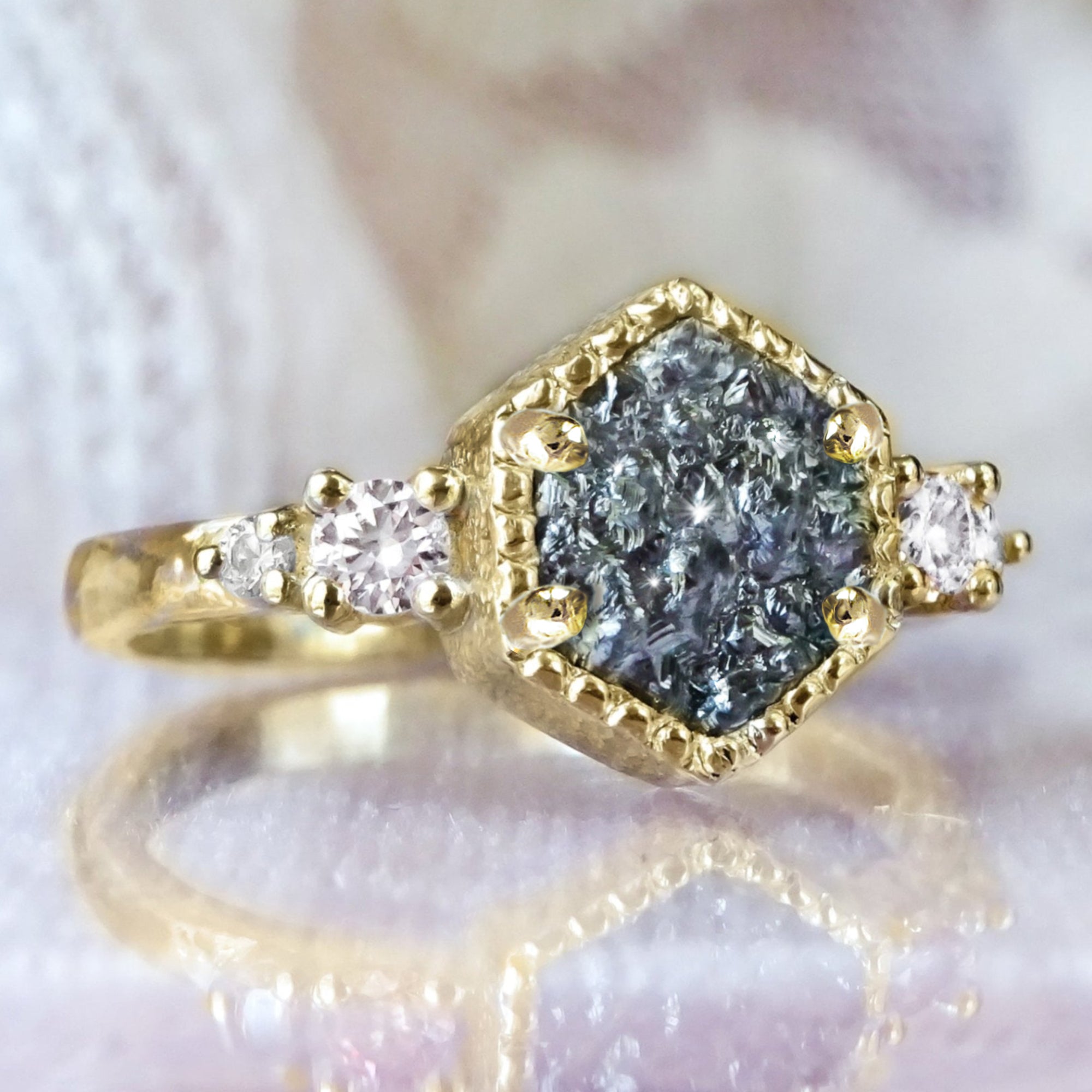 Hexagon Rock Diamond Unique Engagement ring in soild 9ct/ 14ct/ 18ct Gold