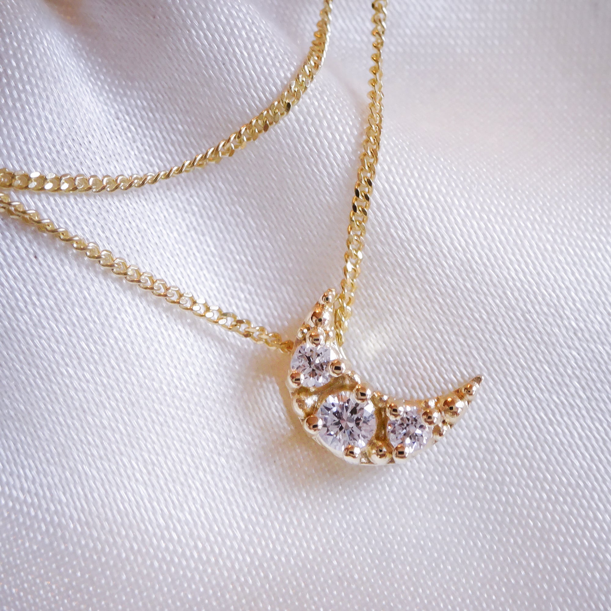 Celestial Dreams Crescent Moon Diamond Sliding Pendant necklace in solid 9ct Gold