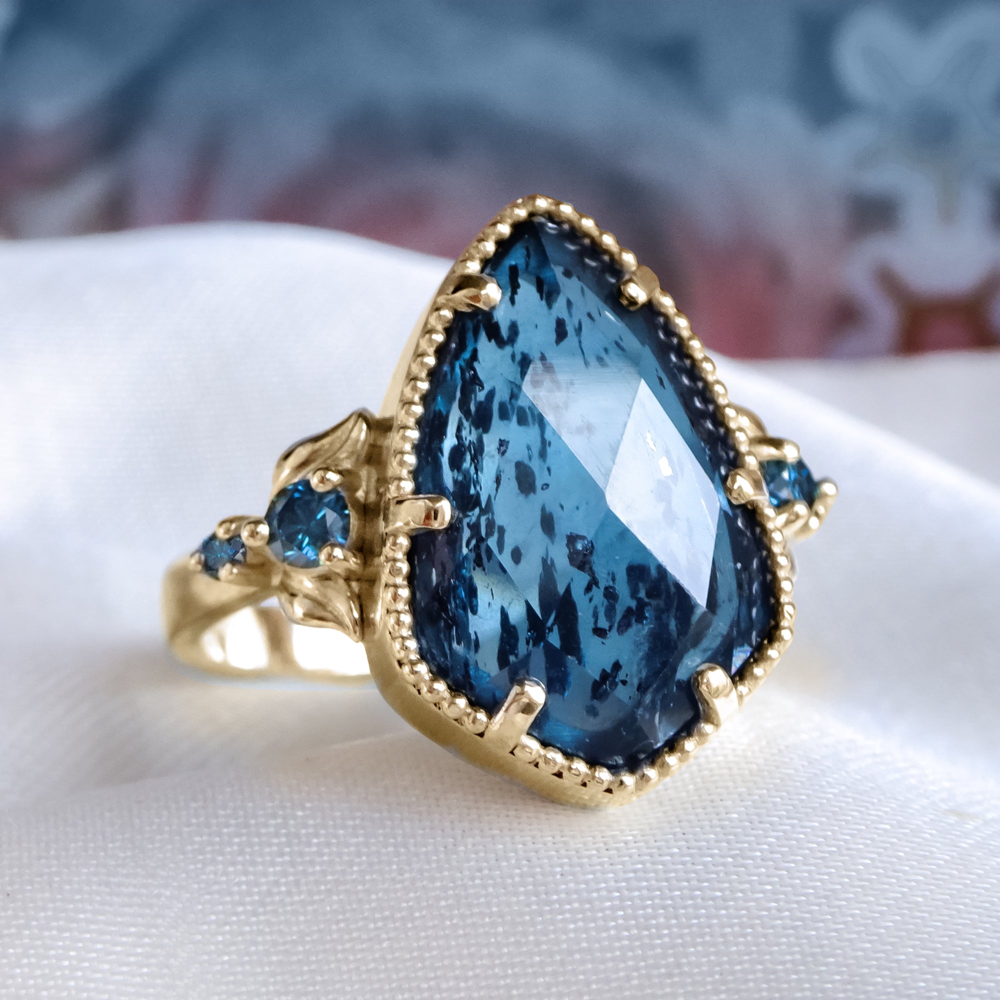 Midnight Teal Moss Kyanite Floral Style Engagement ring in 9ct / 14ct / 18ct soild Gold