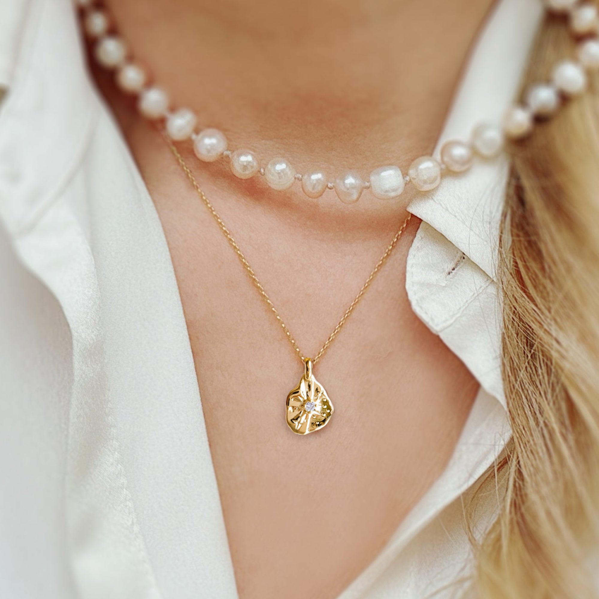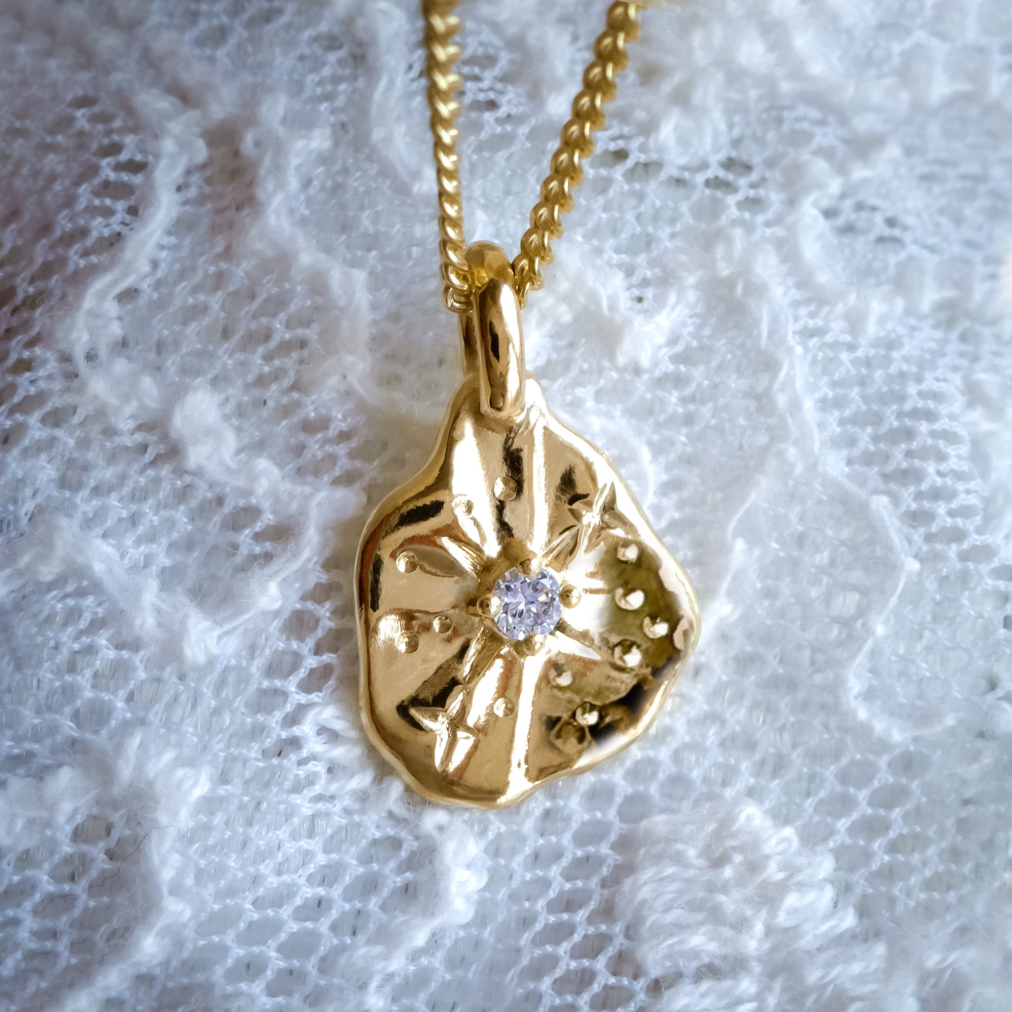Stargazer Molten Gold Diamond Pendant Necklace in 9ct / 14ct/ 18ct Gold.
