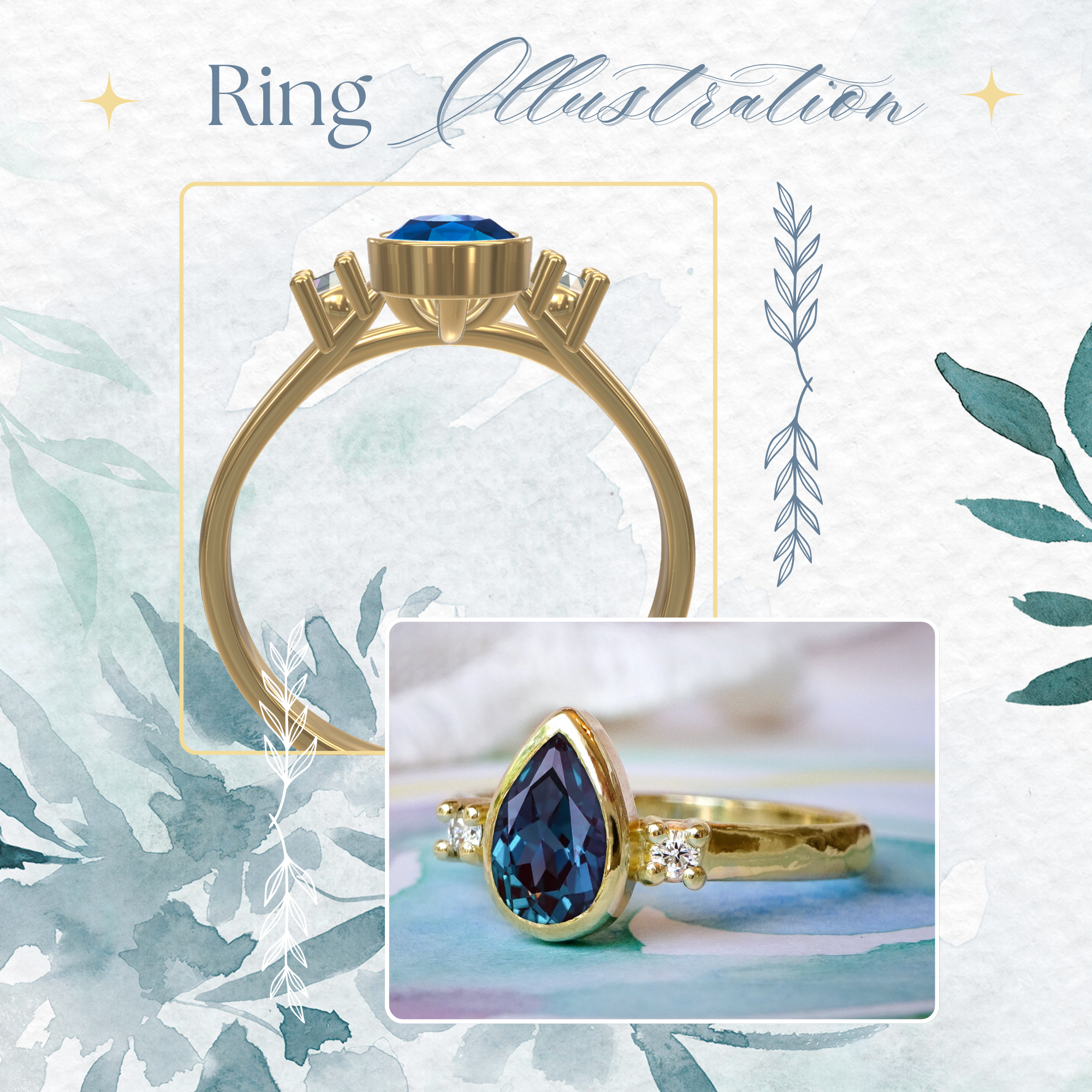 Ethereal Pear Alexandrite Diamond Bridal Wedding Ring set in 9ct Gold