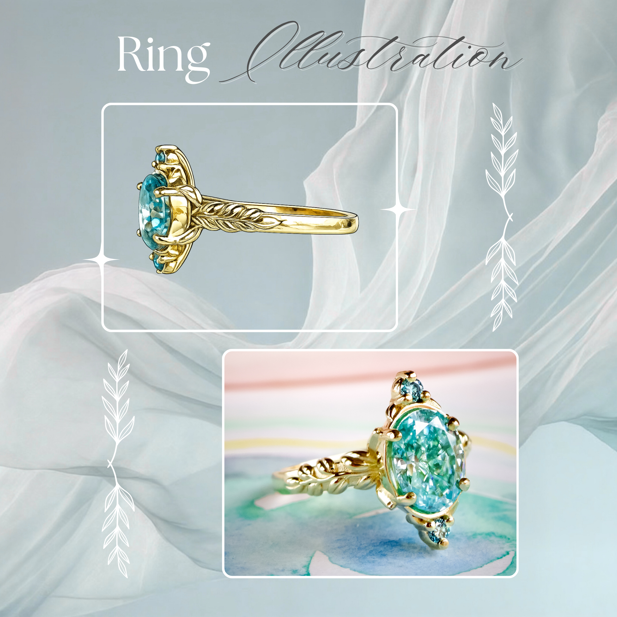 Marquise Vintage Style Aqua Diamond Engagement ring in 9ct /14ct /18ct solid Gold