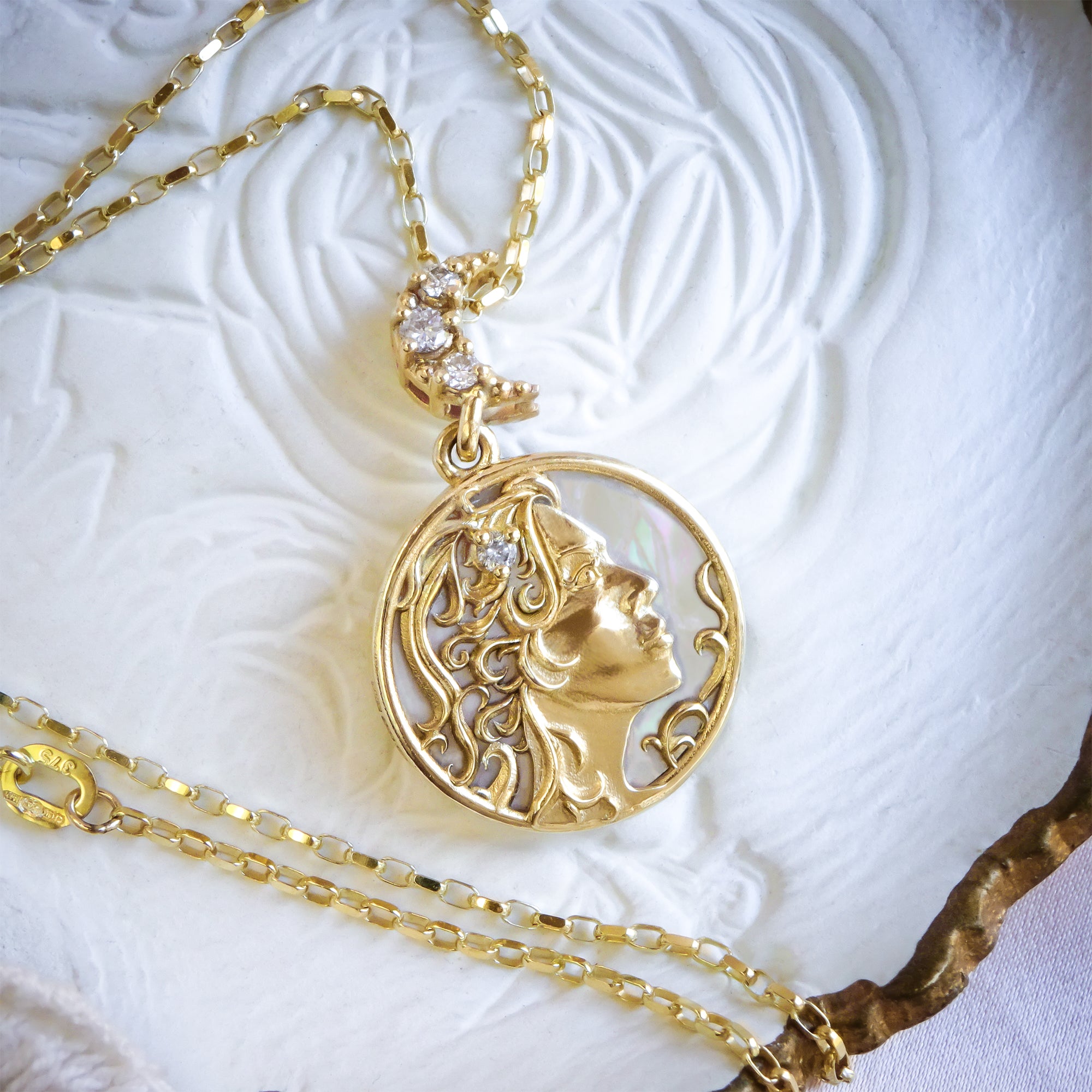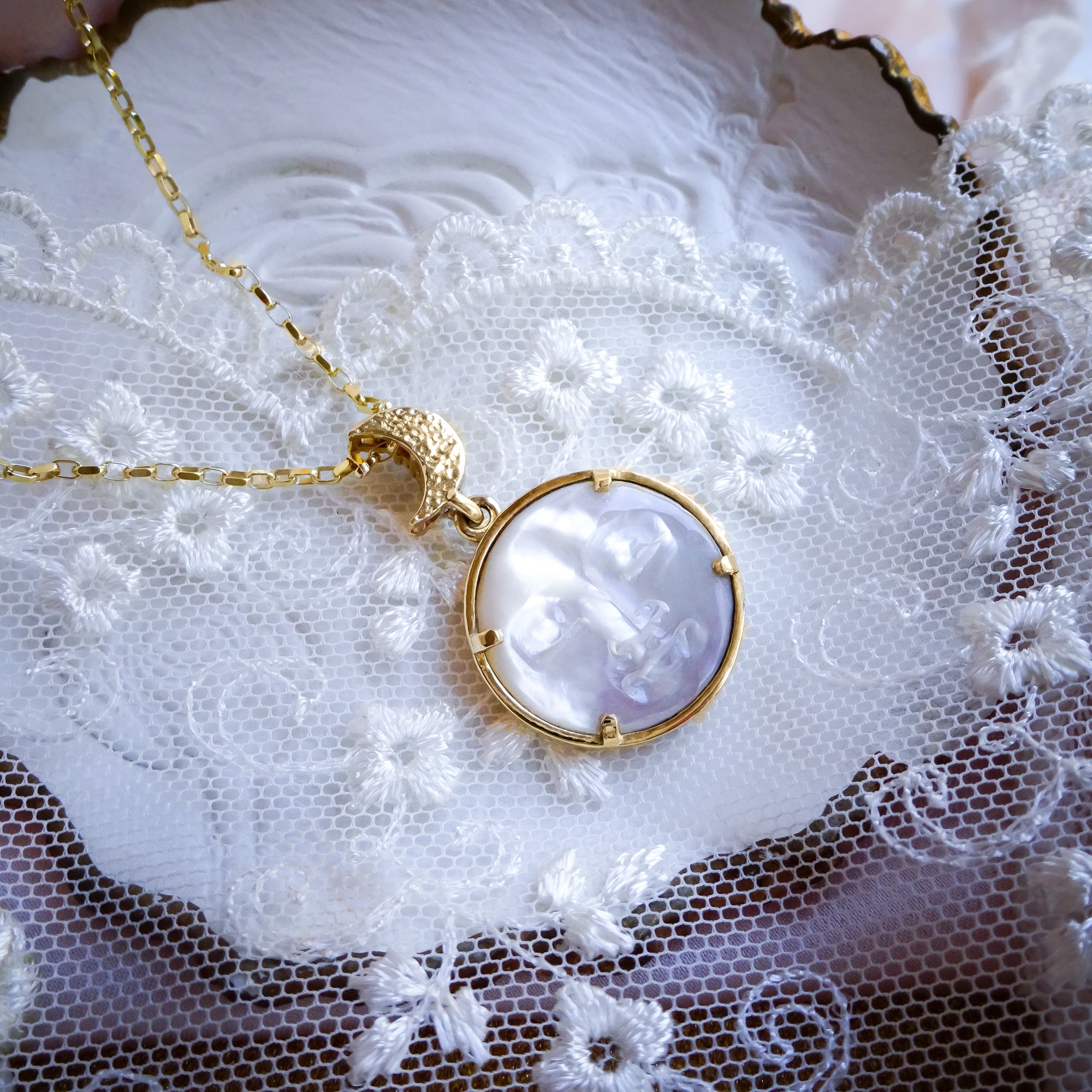 PERSONALISED Cameo Diamond Moon Reversible Pendant Necklace in 9ct / 14ct / 18ct Solid Gold