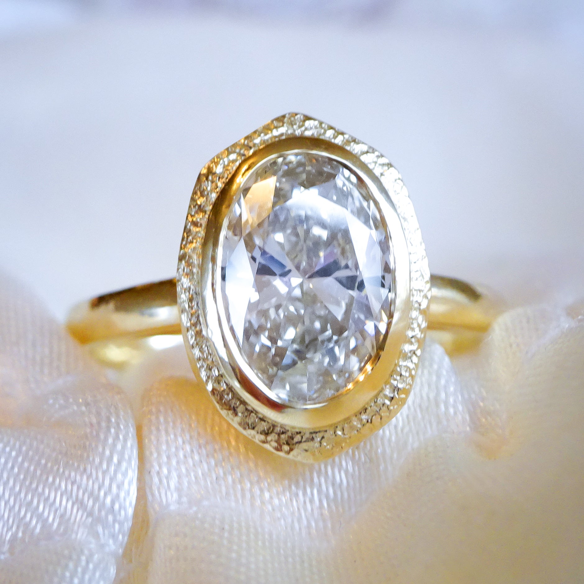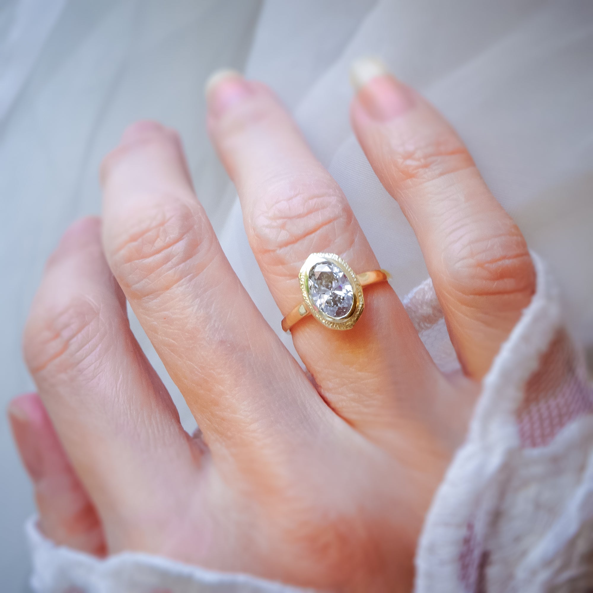 Rock Oval Diamond Solitaire Unique Engagement ring in 9ct / 14ct/ 18ct Gold