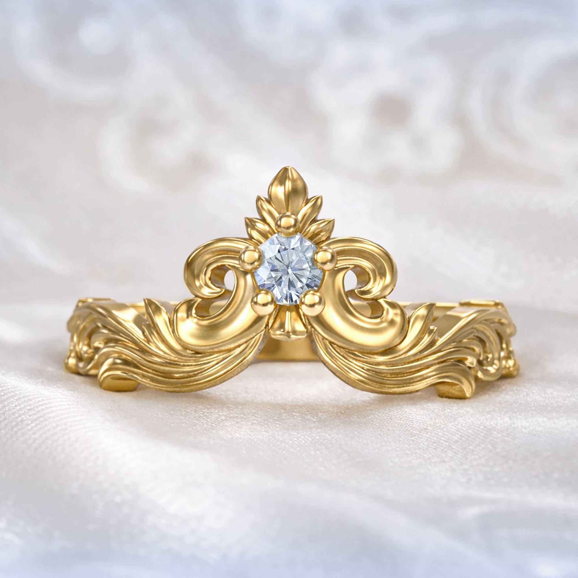 Versailles Baroque Diamond Wishbone Wedding Contour ring in 9ct / 14ct / 18ct Gold