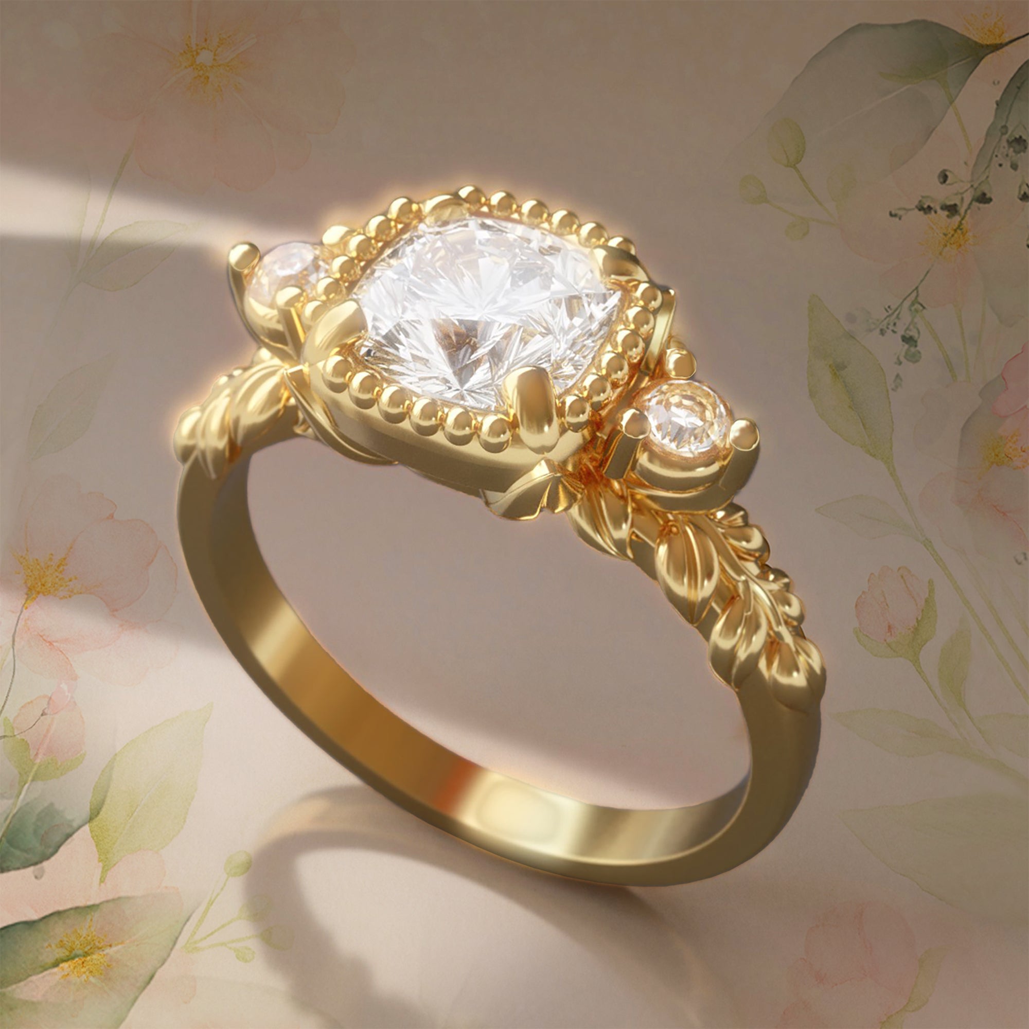 Vintage Style Floral Diamond Engagement ring in 9ct / 14ct/ 18ct solid Gold