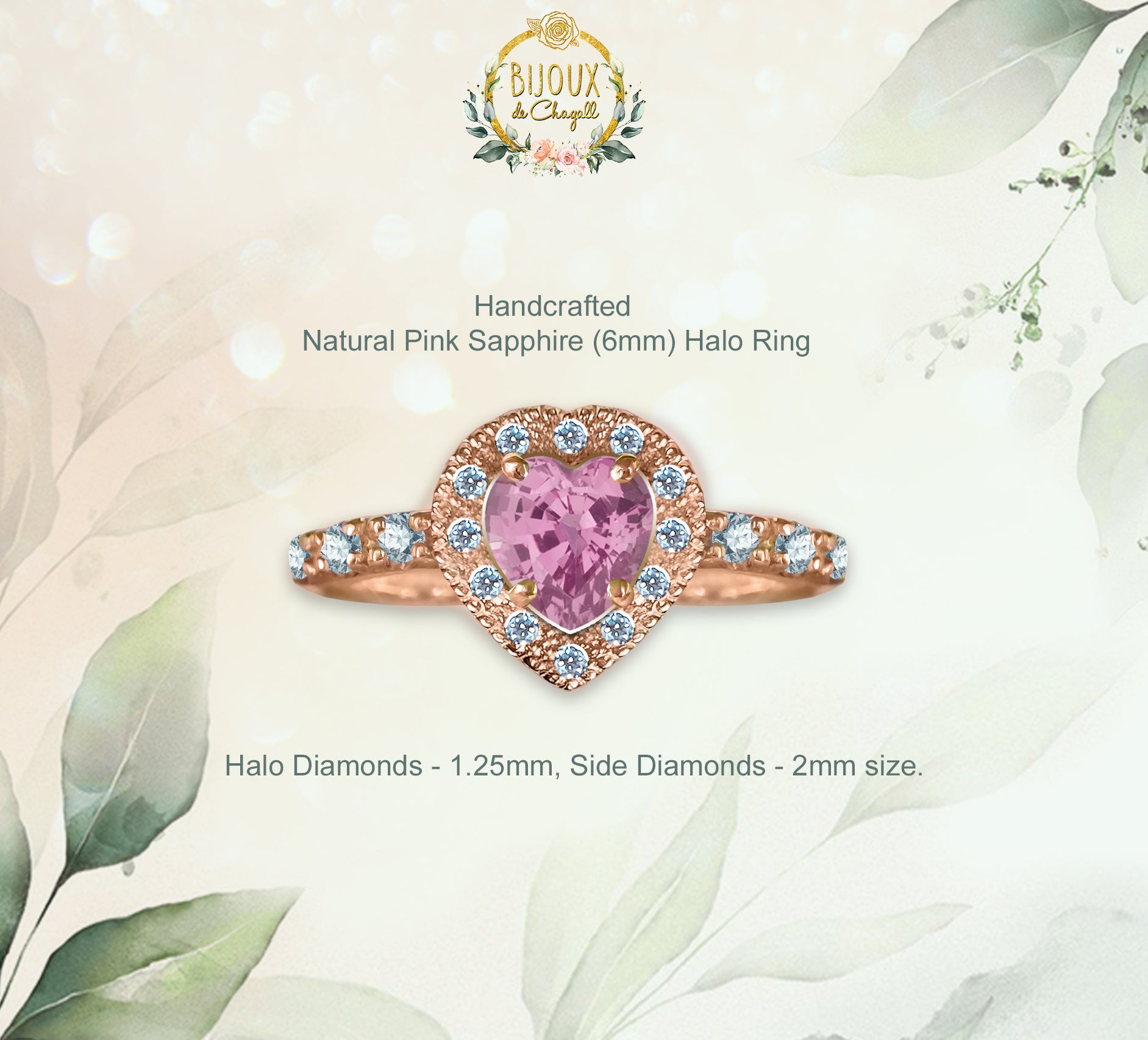 CUSTOM: Pink Heart Sapphire Halo Diamond Unique Engagement ring in solid 14ct Rose Gold