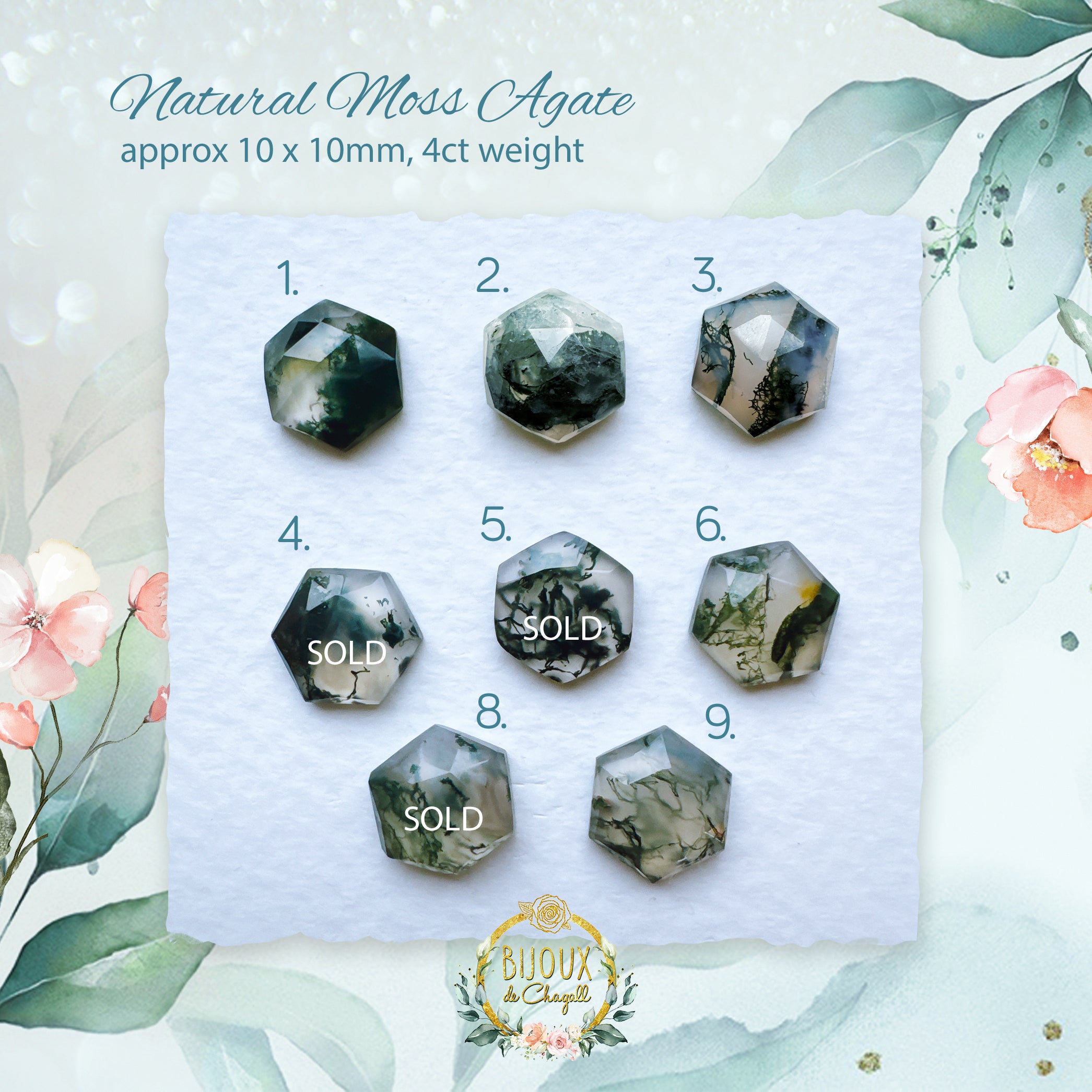 Natural Hexagon Moss Agate Diamond Unique Engagement ring in 9ct / 18ct Gold